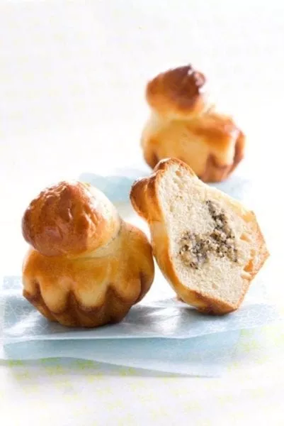 - מחממים את התנור לחום גבוה (200 מעלות). משמנים תבניות אישיות . מניחים לבצק לתפוח כ 20 דקות או עד שמכפיל את נפחו. מוציאים מהקערה אל משטח מקומח ומוציאים ממנו את האויר ע"י תפיחות קלות. יוצרים ממנו כדורים שבמרכזם מניחים כפית גדוש מהמילוי סוגרים היטב (בגודל של כדור פינג פונג ). יוצרים בחלק העליון של כל כדור קער ע"י אצבע כך שיוצרים כדור גדול וקטן מחוברים. מעבירים לתבנית . מהדקים את הכדור הקטן לגדול בעזרת האצבעות. מתפיחים כ 20 דקות, מברישים בביצה ואופים כ 20-15 דקות. ממולץ לאכול באותו היום או להקפיא ולחמם שוב בתנור על חום בינוי.