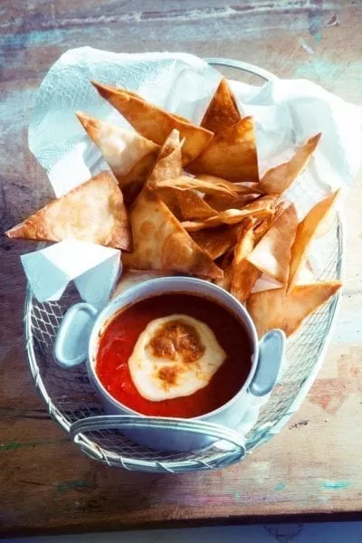במקום לאפות מטגנים את משולשי הטורטייה ב 1 ליטר שמן רגיל חם כ 3 דקות או עד שמזהיבות!
