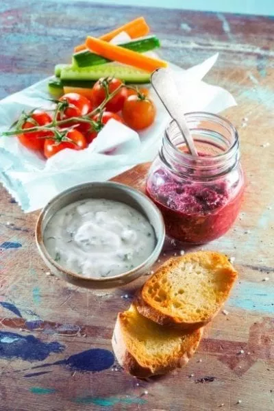 הגשה מומלצת: ירקות טריים חתוכים וברוסקטות