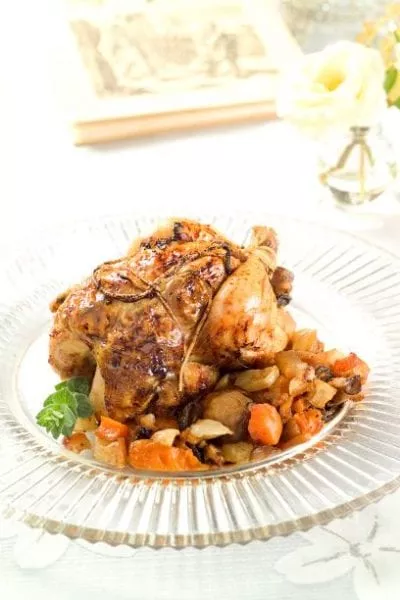 עוף שלם עם ירקות צבעוניים בניחוח לימון מתוק