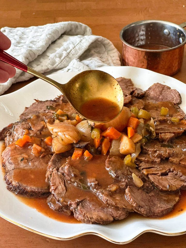 בשר רך שמתבשל לאט עם בצלי אשלוט מתקתקים – מנה שממלאת את כל הבית בריח של חג.