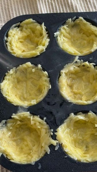 - ממלאים כל שקע בכף גדושה מהמלית. אופים כ 20 דקות או עד שהמלית יציבה. מגישים את הקיש חמים.
