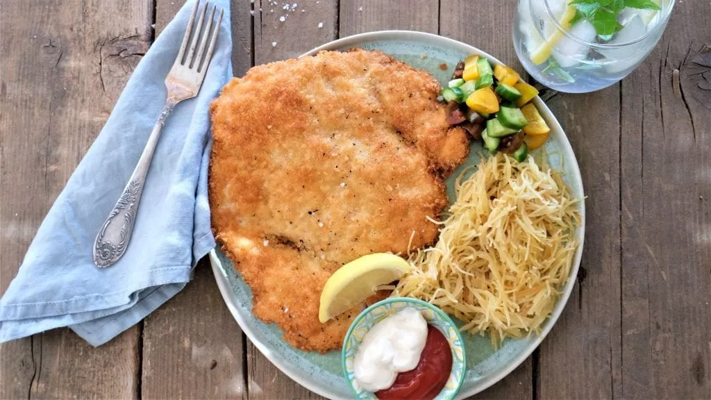 אז החלטתי שאני יוצרת מנת של שניצל עוף מנתח אחד שיוצאת מהצלחת פשוט כי אני מעדיפה שניצל עוף על בקר וככה על הדרך נלמד את האוסטרים שאפשר גם מעוף בנתח אחד.